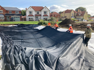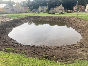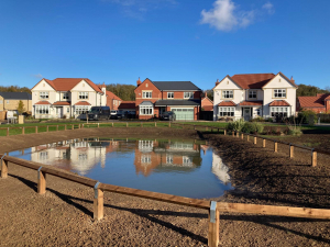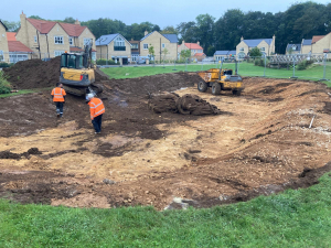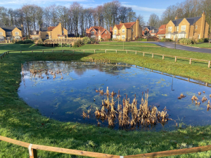 Assistance in the construction of the feature village pond, forming a central part of the development’s landscape and drainage strategy